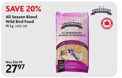 Canadian deal alert! Save 0 on All Season Blend Bird Food at Home Hardware. This general deal brings the price down from 0.00 to just 23.97. Don't miss this Canadian deal. Selling quickly - grab yours now.