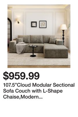 107.5"Cloud Modular Sectional Sofa Couch with L-Shape Chaise,Modern Minimalist Upholstered Couches for Living Room Bedroom,Deep Seat Corner Couch,No Assembly Required