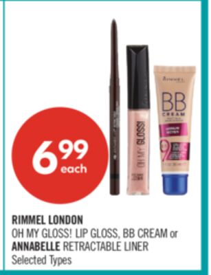 RIMMEL LONDON OH MY GLOSS! LIP GLOSS, BB CREAM or ANNABELLE RETRACTABLE LINER