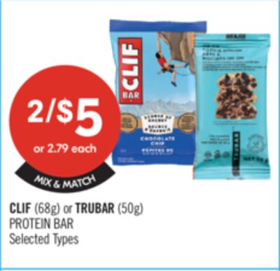 CLIF (68g) or TRUBAR (50g) PROTEIN BAR