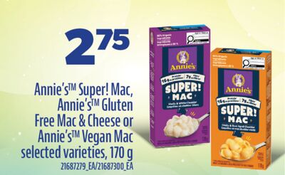 ANNIE'S GLUTEN FREE MAC & CHEESE OR ANNIE'S VEGAN MAC, 170 G