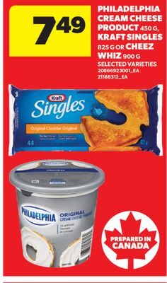 PHILADELPHIA CREAM CHEESE PRODUCT 450 G, KRAFT SINGLES, 825 G OR CHEEZ WHIZ, 900 G