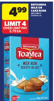 BRITANNIA MILK OR CAKE RUSK, 550/560 G