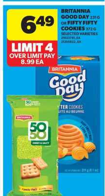 BRITANNIA GOOD DAY, 231 G OR FIFTY FIFTY COOKIES, 372 G