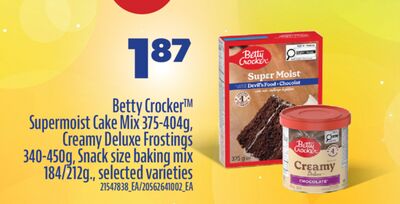 BETTY CROCKER TM SUPERMOIST CAKE MIX, 375-404G, CREAMY DELUXE FROSTINGS, 340-450G, SNACK SIZE BAKING MIX, 184/212G.