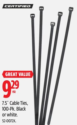Our Canadian shopping experts found this incredible deal on Certified 11˝ Cable Ties, 100-Pk at Canadian Tire. Originally priced at 0.00, you can now get it for just 12.99, saving you 0. Don't miss this Canadian deal. Selling quickly - grab yours now.