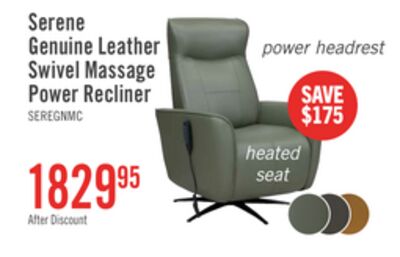 Serene 31" Genuine Leather Power Reclining Massage Chair with Power Headrest and Heated Seat - Green