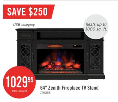 Zenith 64" Electric Fireplace TV Stand with Storage for TVs up to 70" - Black