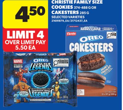 CHRISTIE FAMILY SIZE COOKIES, 374-488 G OR CAKESTERS, 285 G