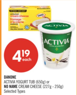 DANONE ACTIVIA YOGURT TUB (650g) or NO NAME CREAM CHEESE (227g - 250g)