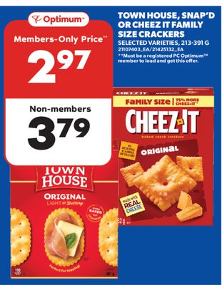 TOWN HOUSE, SNAP'D OR CHEEZ IT FAMILY SIZE CRACKERS, 213-391 G