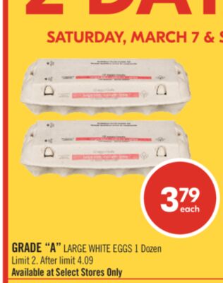Shoppers Drug Mart just dropped the price on GRADE "A" LARGE WHITE EGGS 1 Dozen by %! Get it for 3.79 instead of 0.00 and save 0. A great find for Canadian shoppers.