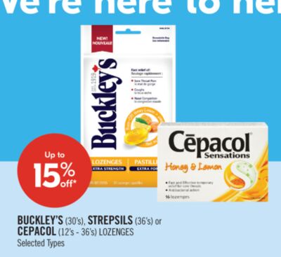 BUCKLEY'S (30's), STREPSILS (36's) or CEPACOL (12's - 36's) LOZENGES