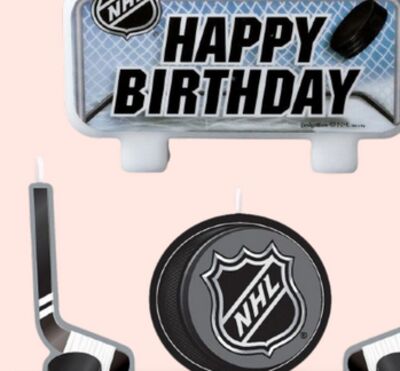 National Hockey League NHL "Happy Birthday" Wax Candle Set, Blue/Black, 4.5-in, 4-pk, for Sports Party