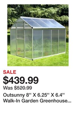 Outsunny 8'' X 6.25'' X 6.4'' Walk-In Garden Greenhouse Polycarbonate Panels Plants Flower Growth Shed Cold Frame Outdoor Portable Warm House Aluminum Frame