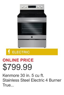 Kenmore 30 in. 5 cu ft. Stainless Steel Electric 4 Burner True Convection Range with Air Fry