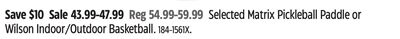 Selected Matrix Pickleball Paddle or Wilson Indoor/Outdoor Basketball.