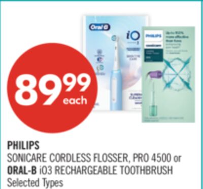 PHILIPS SONICARE CORDLESS FLOSSER, PRO 4500 or ORAL-B iO3 RECHARGEABLE TOOTHBRUSH