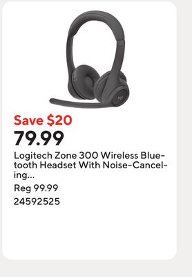 Logitech Zone 300 Wireless Bluetooth Headset With Noise-Canceling Microphone - Graphite