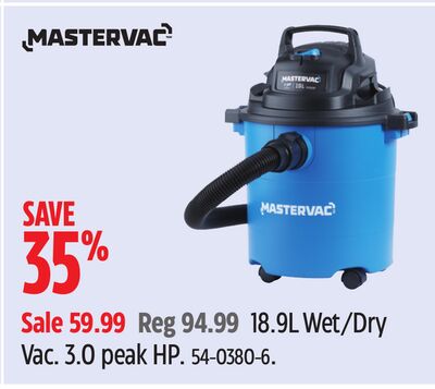 Canadian deal alert! Save 0 on Mastervac 18.9L Wet/Dry Vac at Canadian Tire. This general deal brings the price down from 0.00 to just 59.99. Quality product at an unbeatable Canadian price. Price may go back up soon.