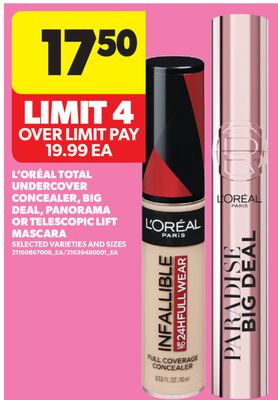 L' ORÉAL TOTAL UNDERCOVER CONCEALER, BIG DEAL, PANORAMA OR TELESCOPIC LIFT MASCARA