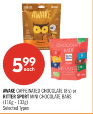 AWAKE CAFFEINATED CHOCOLATE (8's) or RITTER SPORT MINI CHOCOLATE BARS (116g - 133g)