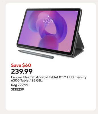 Lenovo Idea Tab Android Tablet 11" MTK Dimensity 6300 Tablet 128 GB SSD 4 GB RAM with Folio Case and Pen - Luna Grey