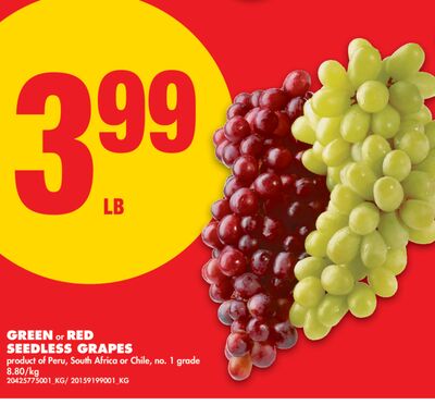 Canadian deal alert! Save 0 on RED OR GREEN SEEDLESS GRAPES at No Frills. This general deal brings the price down from 0.00 to just 2.97. Don't miss this Canadian deal. Canadian shoppers are snapping this up.