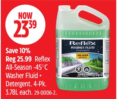 Hot general deal for Canadian shoppers: Reflex Ice Defence Windshield Washer Fluid is now 13.92 at Canadian Tire (regularly 0.00). Quality product at an unbeatable Canadian price. Don't miss out!