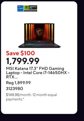 MSI Katana 17.3" FHD Gaming Laptop - Intel Core i7-14650HX - RTX 5060 - 1TB NVMe SSD - 16GB RAM - Win 11 - Bilingual