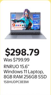 This general deal is one of the best we've seen in Canada. RNRUO 15.6" Windows 11 Laptop, 8GB RAM 256GB SSD at Walmart for just 298.79 (was 0.00) - that's 0 in savings! A great find for Canadian shoppers.