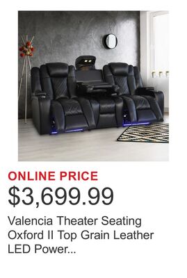 Valencia Theater Seating Oxford II Top Grain Leather LED Power Reclining 3-piece Home Theatre Seating
