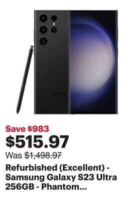 Refurbished (Excellent) - Samsung Galaxy S23 Ultra 256GB - Phantom Black - Unlocked