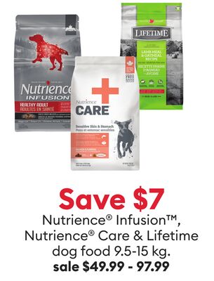 Save $7 Nutrience® Infusion™, Nutrience® Care & Lifetime dog food