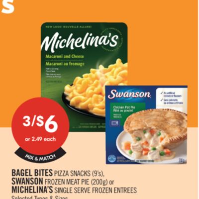 BAGEL BITES PIZZA SNACKS (9's), SWANSON FROZEN MEAT PIE (200g) or MICHELINA'S SINGLE SERVE FROZEN ENTREES