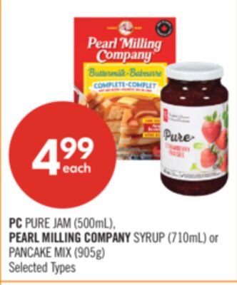 PC PURE JAM (500mL), PEARL MILLING COMPANY SYRUP (710mL) or PANCAKE MIX (905g)