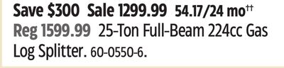 Canadian deal alert! Save 0 on Yardworks 5-Ton 15A Duo-Cut Electric Log Splitter. at Canadian Tire. This general deal brings the price down from 0.00 to just 349.99. Don't miss this Canadian deal. Canadian shoppers are snapping this up.